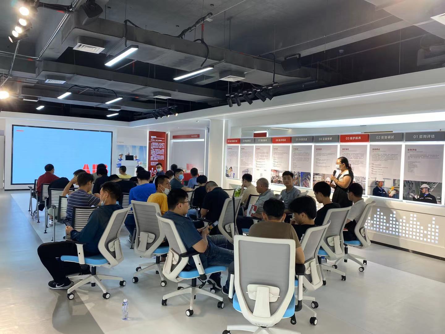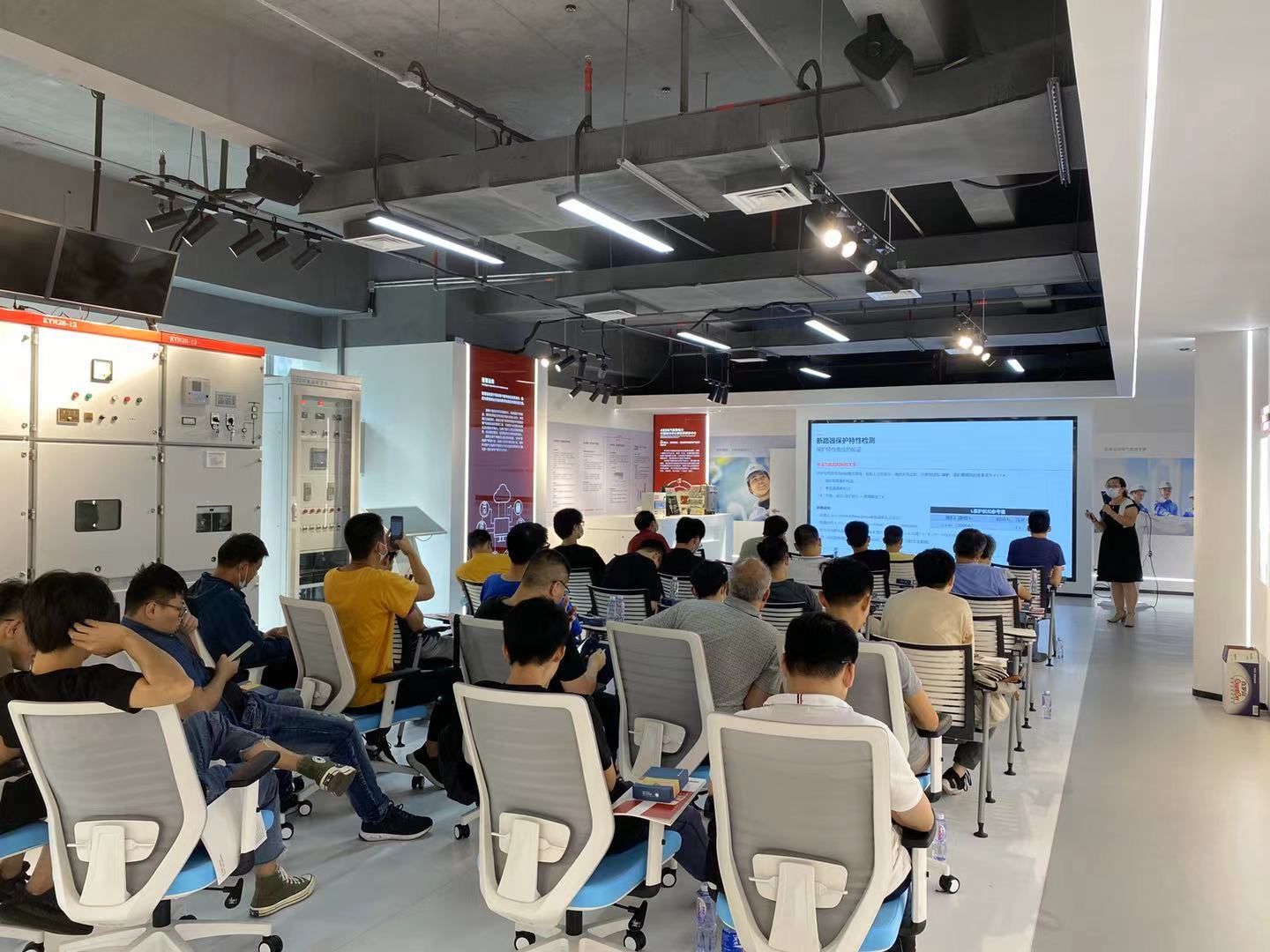 作為新時代數字化展廳,通意達研發中心處處呈現現代化科技的氣息,設有智能電網和微電網系統展示;中低壓柜和環網柜等多種柜型;中低壓電氣元件、變頻和PLC等自動化系統,同時配置全套試驗設備,現場培訓用教具供學員實操學習,部分電氣產品可進行通電操作,現場可對學員進行理論和實操的標準化和定制化培訓和考核。